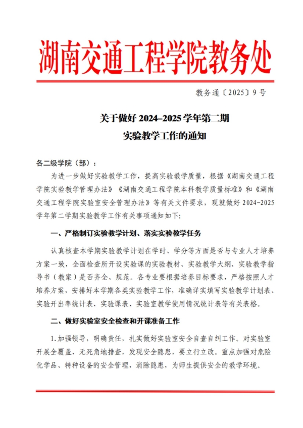 关于做好2024~2025学年第二学期实验教学工作的通知