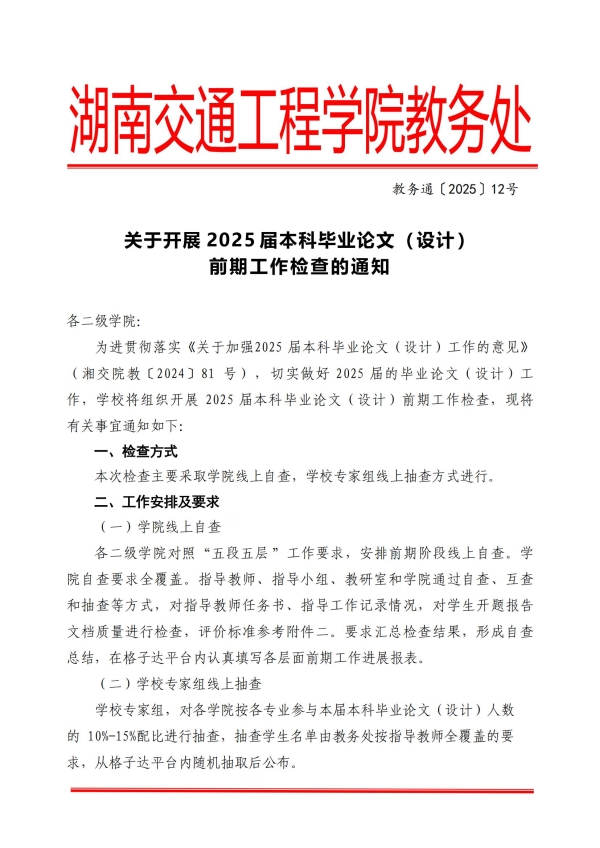 关于做好2025届本科生毕业论文(设计)前期阶段工作的通知