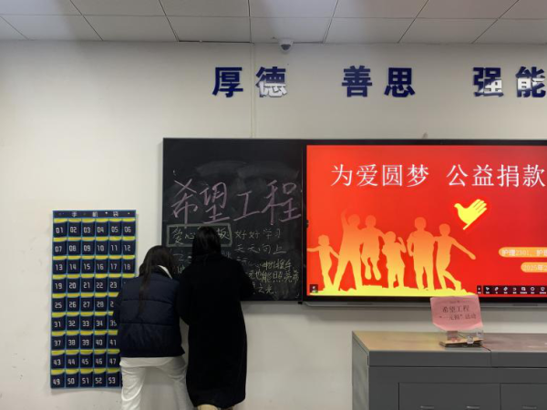 同学们有序排队捐款,班干部认真维持秩序,对于因特殊情况不便现场参与的同学,课后也单独为他们开放了线上捐赠渠道,确保每一份爱心都能传递到位。同时,在捐赠过程中,班委提前制作“爱心留言板”,捐赠者可在教室黑板的“心愿墙”上写下寄语全程由团支书监督、记录,确保公开透明。