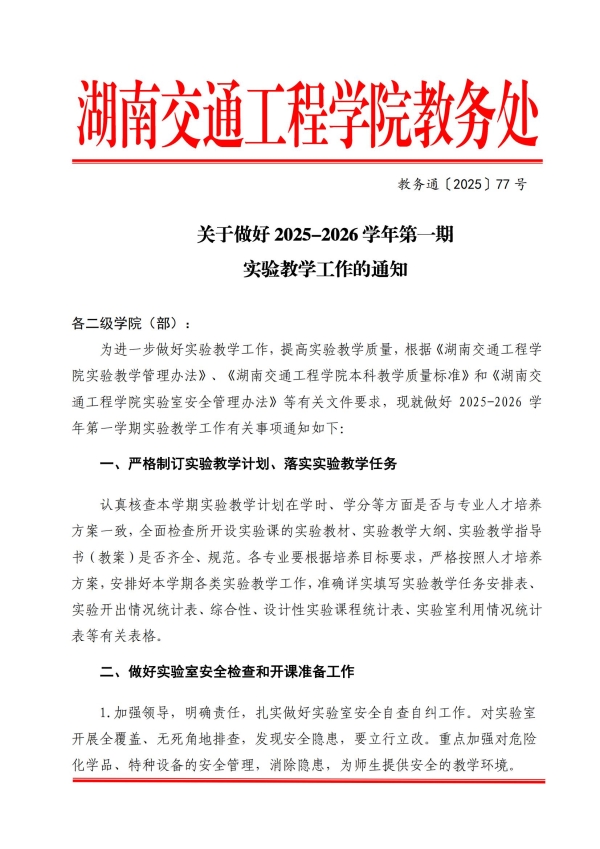 关于做好2025~2026学年第一学期实验教学工作的通知