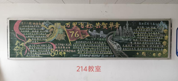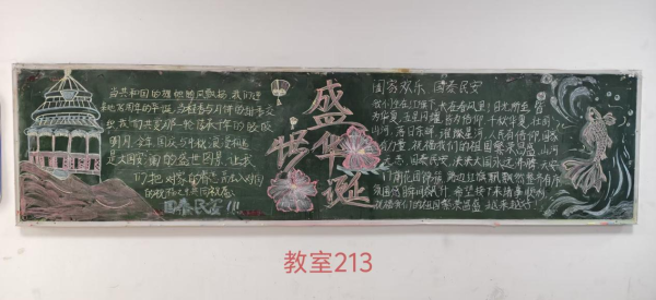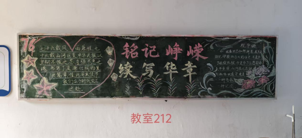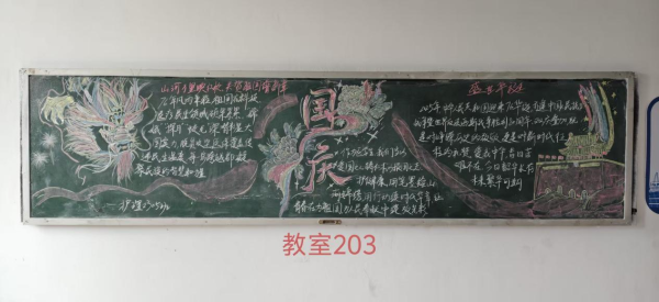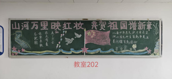 当五星红旗迎风招展,映照着万家灯火的团圆;当明月高悬夜空,承载着华夏儿女的赤诚。为热烈庆祝中华人民共和国成立七十六周年,我校特举办"山河万里映红妆,共贺祖国谱新章"主题黑板报活动,全体同学以笔为媒,以板为卷,共绘家国盛景!