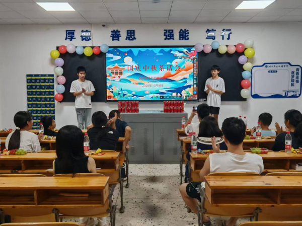 国庆中秋节来临之际,为让留校同学感受到学院的温暖与关怀,2025年10月6日晚,医学技术与护理学院于教学楼106教室举了一场别开生面的国庆中秋茶话会。学院党总支书记邓丽、党总支副书记兼团总支书记刘建军与十余名留校同学欢聚一堂,共庆佳节。活动由护理2402班洪展飞、张守贤主持。