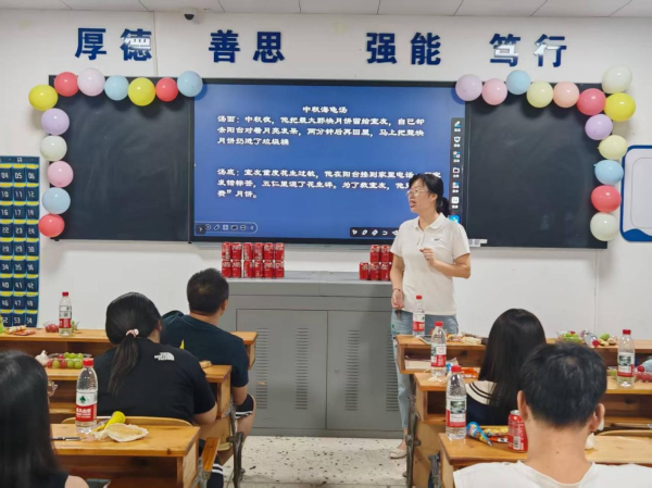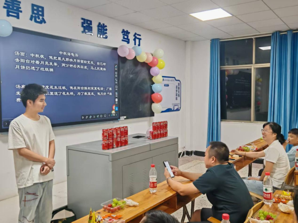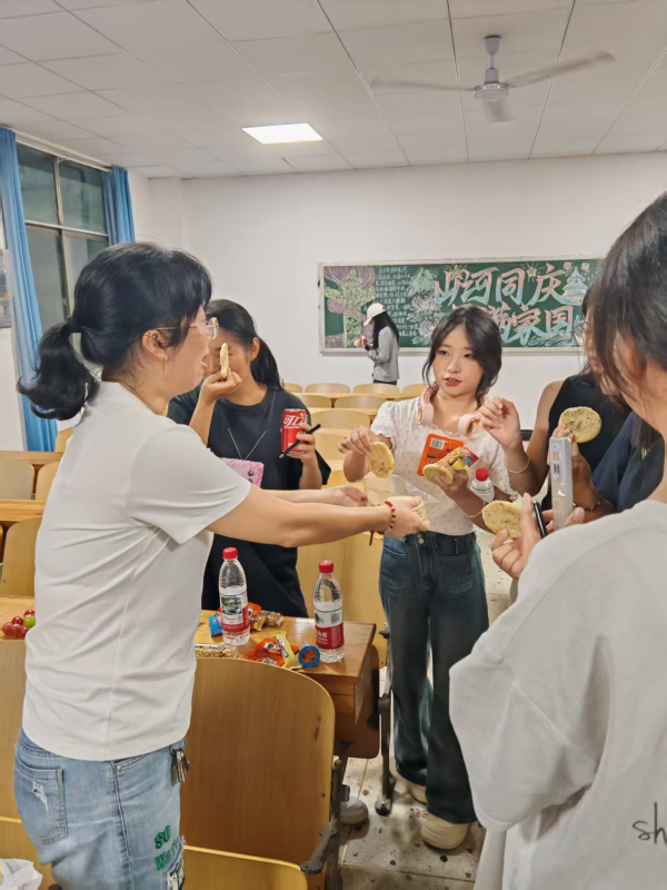 茶话会游戏环节中,脑筋急转弯式的“猜谜语”考验着大家的智慧与反应,同学们争相抢答,场面热烈;“剥柚子比赛”则趣味横生,大家手脚并用,忙得不亦乐乎;而新颖的“中秋海龟汤”推理游戏更是将气氛推向高潮,奇思妙想的剧情与团队协作的默契相互交织,教室内充满了轻松愉快的笑声。这些精心设计的互动游戏,让每一位同学都沉浸其中,感受到了浓浓的节日喜悦和同窗情谊 。