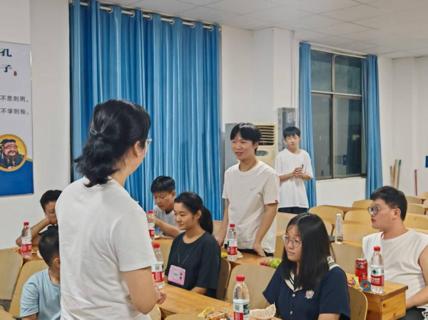 在交流环节中,同学们纷纷起身,介绍自己的家乡、专业和兴趣爱好,分享在校的学习生活感受以及未来的职业规划