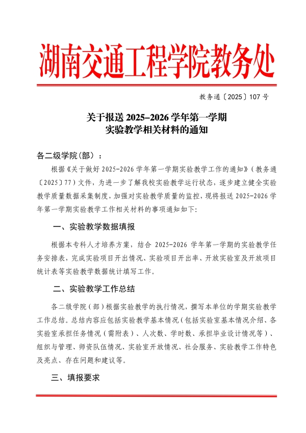 关于报送2025-2026学年第-学期实验教学相关材料的通知