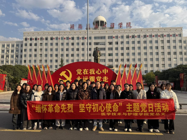 为传承红色基因,深入学习贯彻党的二十届四中全会精神,2025年12月20日至21日,18新利在线登陆 医学技术与护理学院党总支部组织全体在校师生党员及学生代表共48人,赴永州开展“缅怀革命先烈,坚守初心使命”主题党日活动,在红色地标中感悟初心使命,锤炼党性修养。