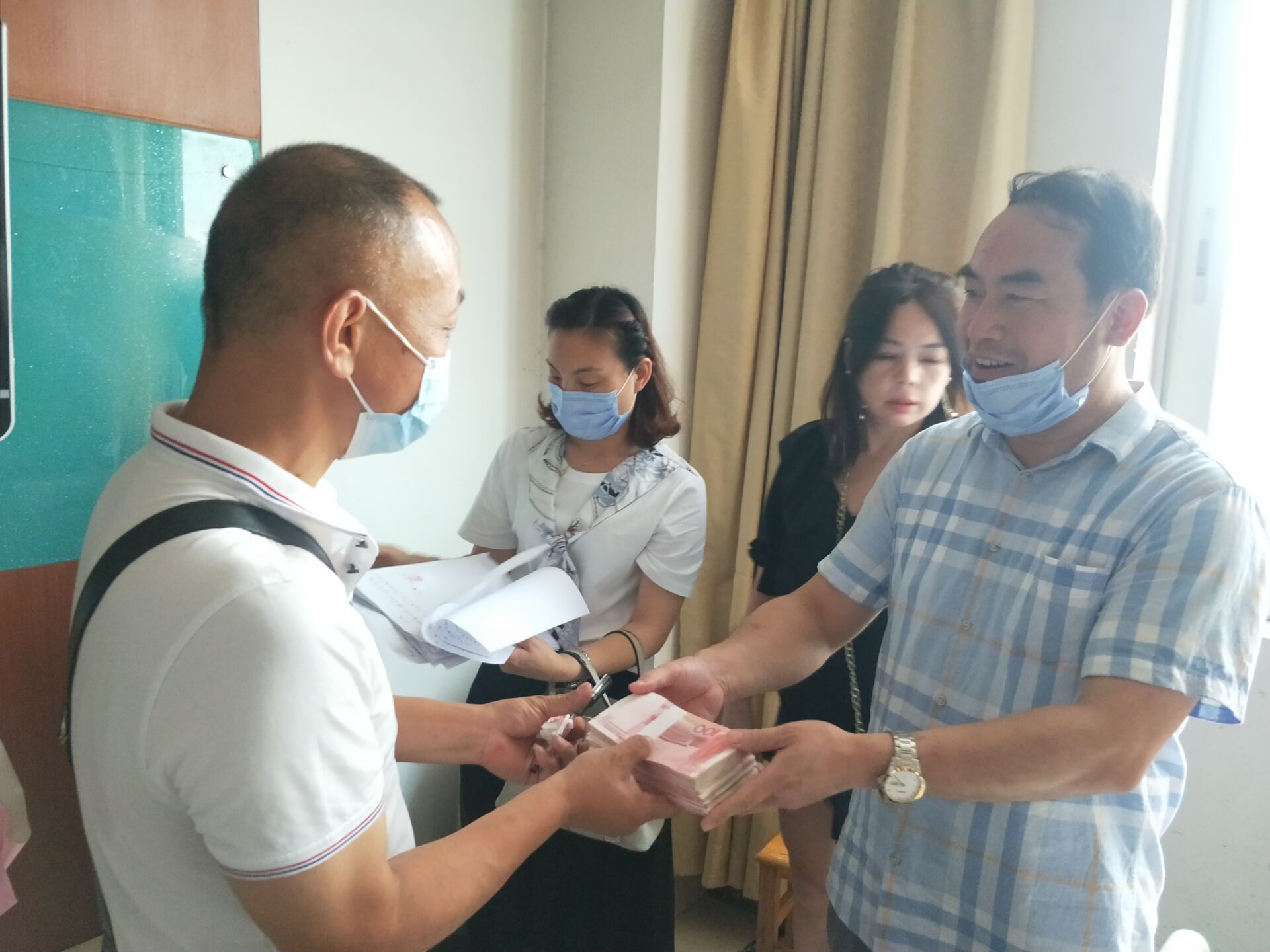 人文与艺术学院党总支书记沈飚将学校捐款送与刘诗缘父亲