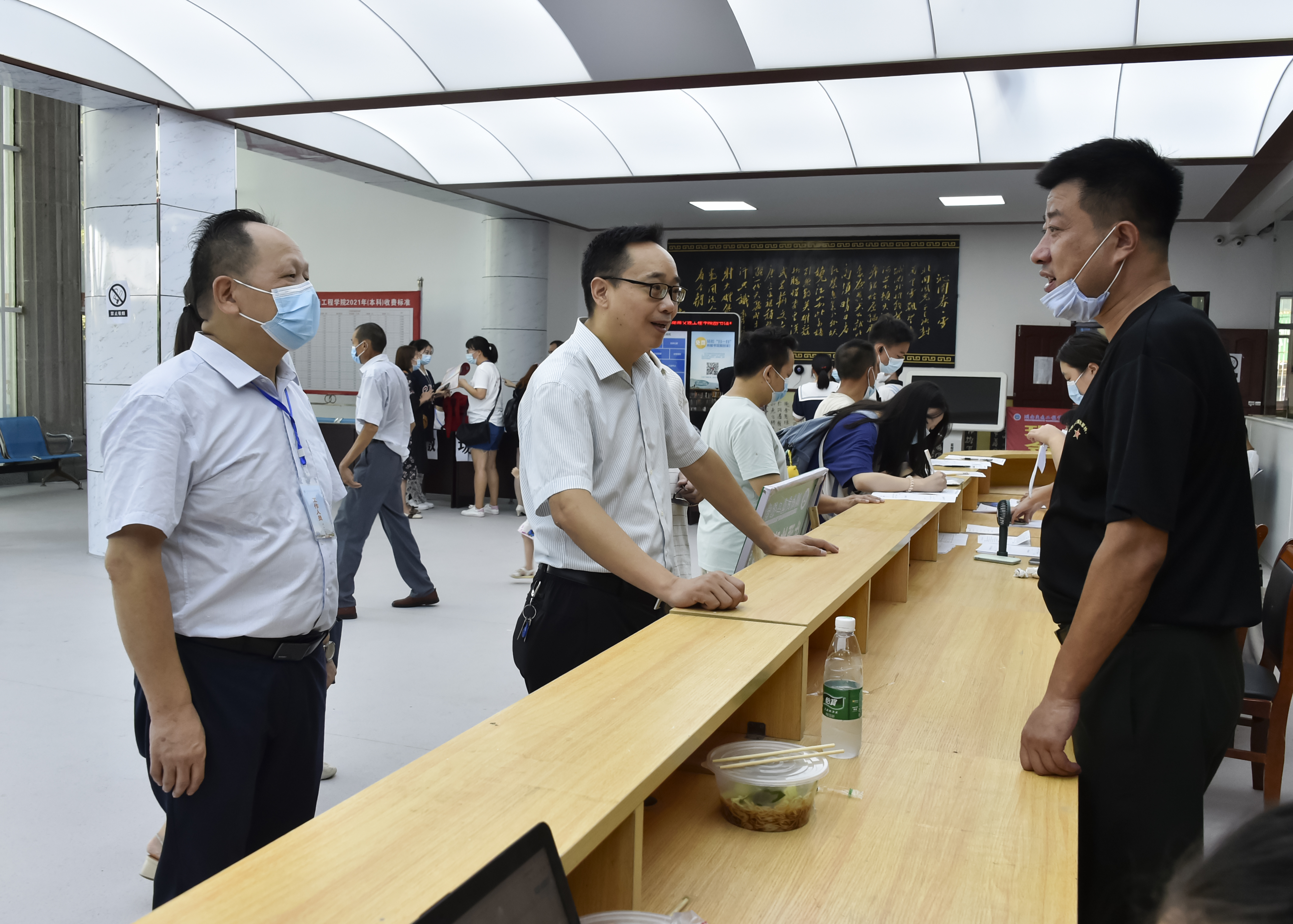 志愿服务、热情周到。宿舍、教室、食堂装修一新,设施设备配备齐全,校园干净美丽。高铁站、火车站、数个汽车站80余名校团委志愿者装统一、热情洋溢,引导新生和家长第一时间抵达学校;报到现场,学生志愿者身着校服,亮明身份,引导新生快速便捷完成报到手续;休息区为家长准备了解暑降温品传递学校关怀。各接待点工作人员细心为学生和家长答疑解惑;“绿色通道”接待点为经济困难、受洪灾影响家庭学生办理缓交学费、生源地信用助学贷款受理等业务,确保每一位新生都能顺利入学。