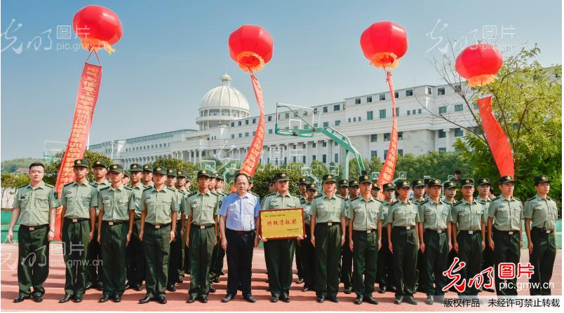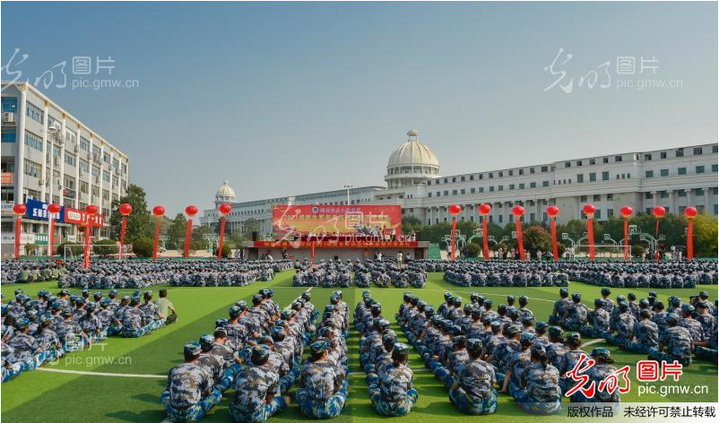 光明网客户端9月18日讯(通讯员 李建华)2021年9月17日,18新利在线登陆 2021级新生军训总结表彰暨开学典礼在学校田径场举行,4000余名新生一展青春风采,精彩的汇报表演赢得在场领导及老师的热烈掌声和满意笑容。