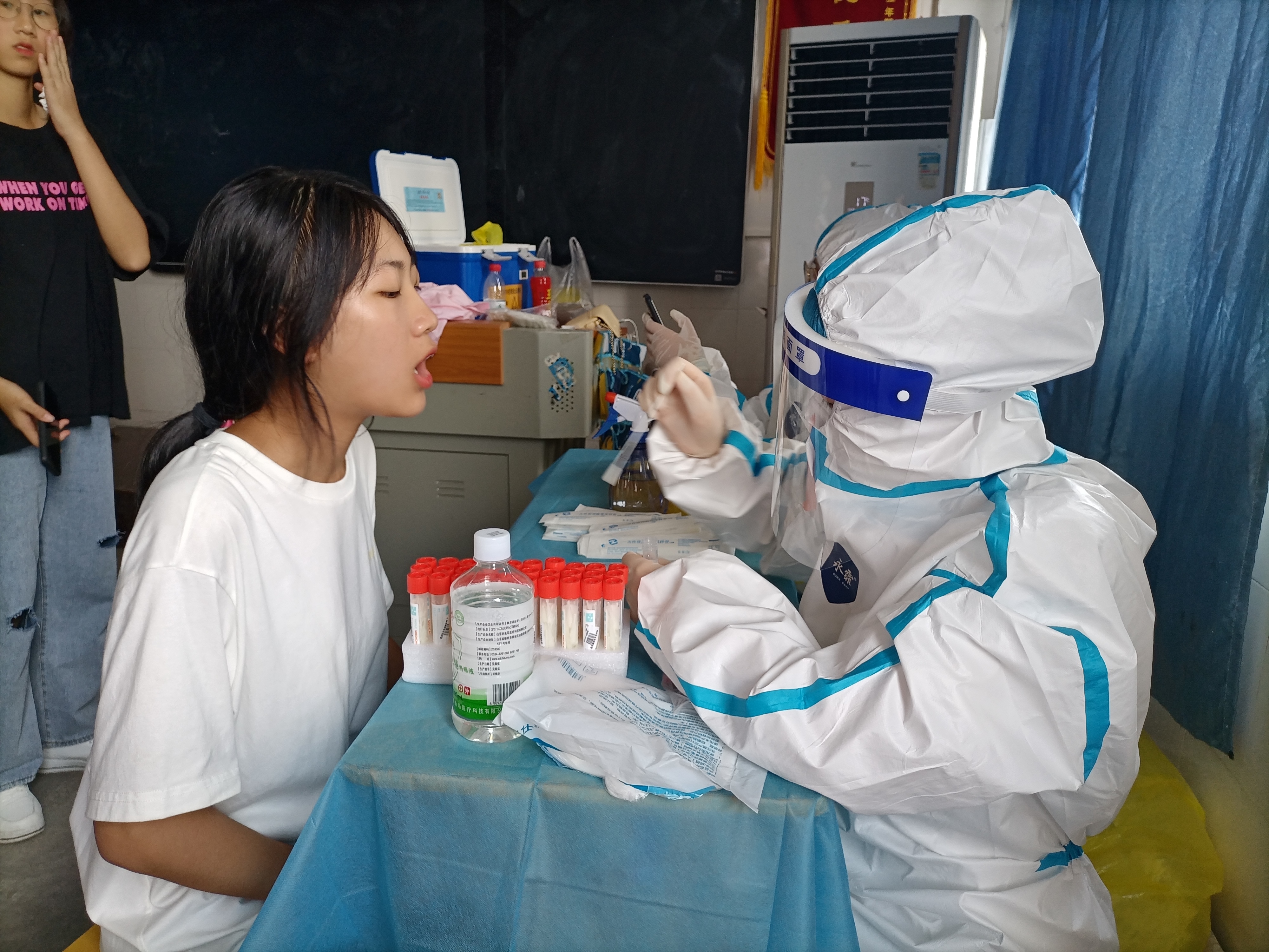 本网讯( 记者 摄影 赵红深 ) 为贯彻落实衡阳市疫情防控工作紧急会议精神及工作部署,从严从紧抓好我校疫情防控各项措施,守护师生员工的身体健康和生命安全,9月17至18日,学校邀请蒸湘区疾控中心来校对全体师生员工进行核酸检测工作。此次检测对象不仅涵盖了全体教职员工及学生,更是将检测范围扩大到了学校外来后勤服务人员,确保应检尽检、全员覆盖。
