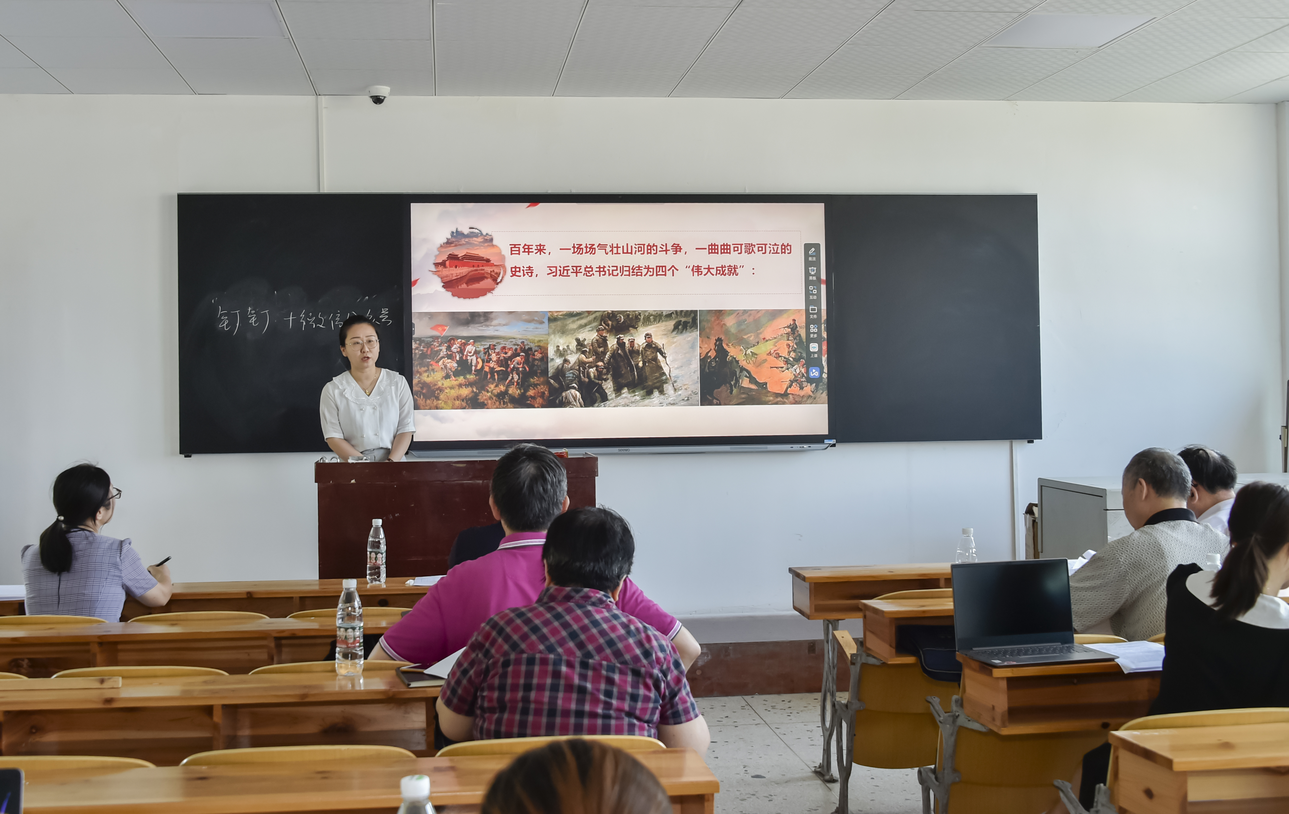 本网讯(记者 赵红深  通讯员  王海娥  摄影 李建华为进一步推动教师主动适应信息化、人工智能等新技术变革,积极有效开展教育教学,不断提高课程育人能力,学校组织举办了2021年信息化教学竞赛活动。经过各二级学院前期的初赛选拔,9月3日学校在教学楼105室举行信息化教学校级赛,来自各二级学院(部)的10名教师参加了现场授课决赛角逐。