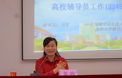 本网讯(通讯员摄影李建华)为贯彻落实辅导员职业能力标准和立德树人的中心任务,提升辅导员教育、管理、指导和服务四位一体的工作能力和水平,破解工作中遇到的难题,321日上午,第十届全国辅导员年度人物、南华大学辅导员马军教授应邀来我校就辅导员如何提升工作能力为全校辅导员作了一场精彩生动的专题讲座。校党委书记苏玲主持讲座。这是我校党委辅导员思想政治工作专题培训系列活动之一——外请专家专题授课。