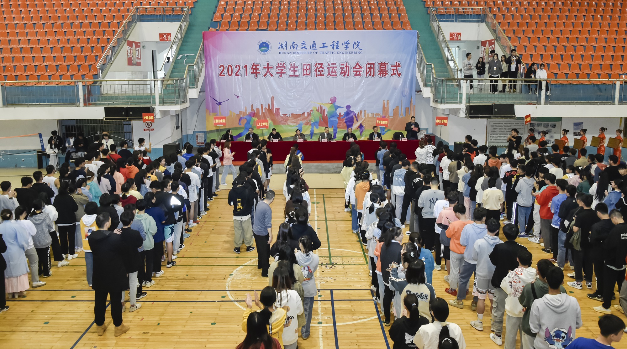 本网讯(记者 赵红深 摄影 李建华)英姿飒爽展豪情,信心满怀夺佳绩。我校2021年大学生田径运动会在组委会的精心组织下,经过全体运动员、裁判员、全校师生的热情参与和共同努力,经过2天紧张激烈的角逐圆满完成各项赛事,于10月28日下午胜利闭幕。下午4时30分,学校在体育馆举行闭幕式,校长陈治亚、名誉校长刘平娥、党委副书记李先聪、纪委书记刘毅, 副校长刘初生、樊晓平、余孟辉,校董事董晔卉等校领导出席, 相关职能部门和各学院负责人,运动员、裁判员、全体辅导员和5000余学生代表参加了闭幕式。余孟辉主持。