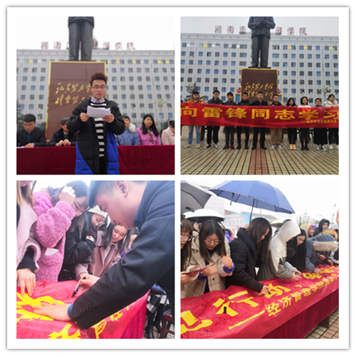 本网讯(通讯员罗朝勇 摄影赵孝锶)2019年3月8日下午,经济管理学院党总支在学校绿色文化广场开展“学雷锋、见行动,争做合格党员”主题党日活动。经济管理学院党总支书记宁恒、院长朱忠祥教授、副院长王冰教授及全院师生党员参加活动。活动由党总支副书记罗朝勇主持。 全体起立,伴随着“学习雷锋好榜样,忠于革命忠于党,爱恨分明不忘本,立场坚定斗志强……”的优美旋律,纵情合唱《学习雷锋好榜样》,以这种独特方式纪念毛泽东主席提出“向雷锋同志学习”56周年。 朱忠祥做了题为《学雷锋,见行动,做合格党员》的讲话,他强调,当代大学生要以雷锋精神为标尺,体现在行动上,落实在学业中,把自己的理想追求汇入到中华民族伟大复兴的宏伟进程,在实现中国梦的生动实践中放飞青春梦想,做忠诚干净担当的时代新人。 学生党员代表赵孝锶、学生代表刘君分别发言表示,作为一名大学生,就要热爱自己的学校,不断提高和完善自己,用行动来传承践行雷锋精神。 宁恒在讲话中指出,全院师生要在实践中深入体会雷锋精神的涵义,体验雷锋精神的意义,进一步推进校园精神文明建设。 宁恒指出,学习雷锋精神,就是要做到学习上锲而不舍、工作上勤奋努力、生活上艰苦朴素;就是要学习雷锋的“镙丝钉”精神,刻苦钻研,干一行爱一行;就是要学习雷锋听党话跟党走,服从组织安排、听从组织指挥、任劳任怨的大局意识;就是要学习雷锋勤俭节约、艰苦奋斗的作风精神;学习雷锋全心全意为人民服务、做好事不留名的奉献精神。 宁恒强调,全院师生要以习近平新时代中国特色社会主义思想为指导,认真贯彻全国全省教育大会精神,立足现实,苦干实干巧干,为全面推动我校本科教学合格评估工作而奋发努力。 (责编:李建华) |