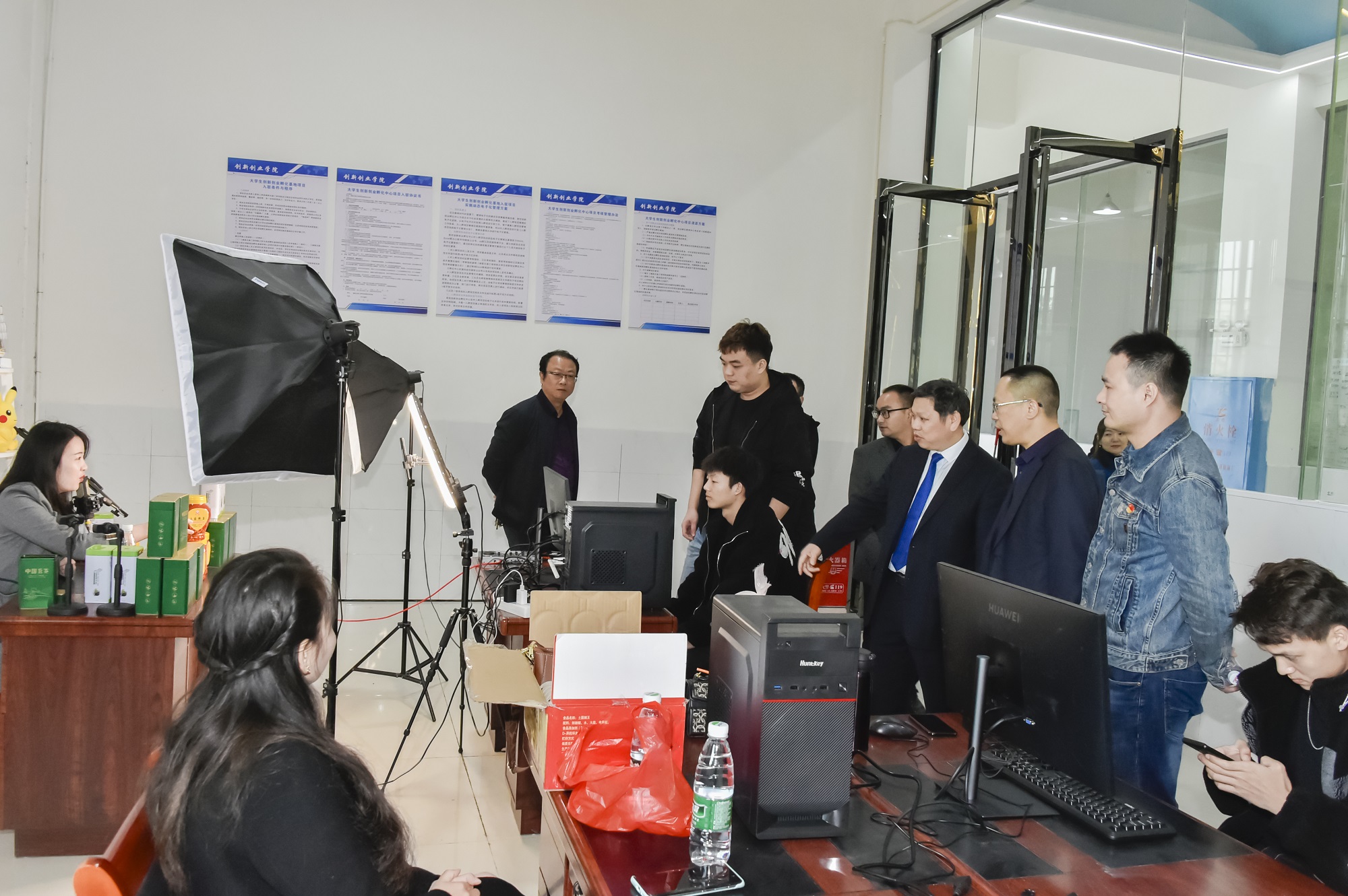上午10时,钟秋明一行一进校门就现场考察我校创新创业工作和大学生创新创业孵化基地。在校领导的陪同下,先后视察了创业一条街、创新创业学院、电工电子创新中心、动车实训基地、机电工程创新中心、轻轨实训基地等场所。钟秋明一边视察,一边听取学校领导的汇报和介绍。他们对刘福生强烈的社会责任感和浓郁的教育情怀表示赞誉,对我校一流的大学生创新创业场地、制度和工作机制给予了高度评价。