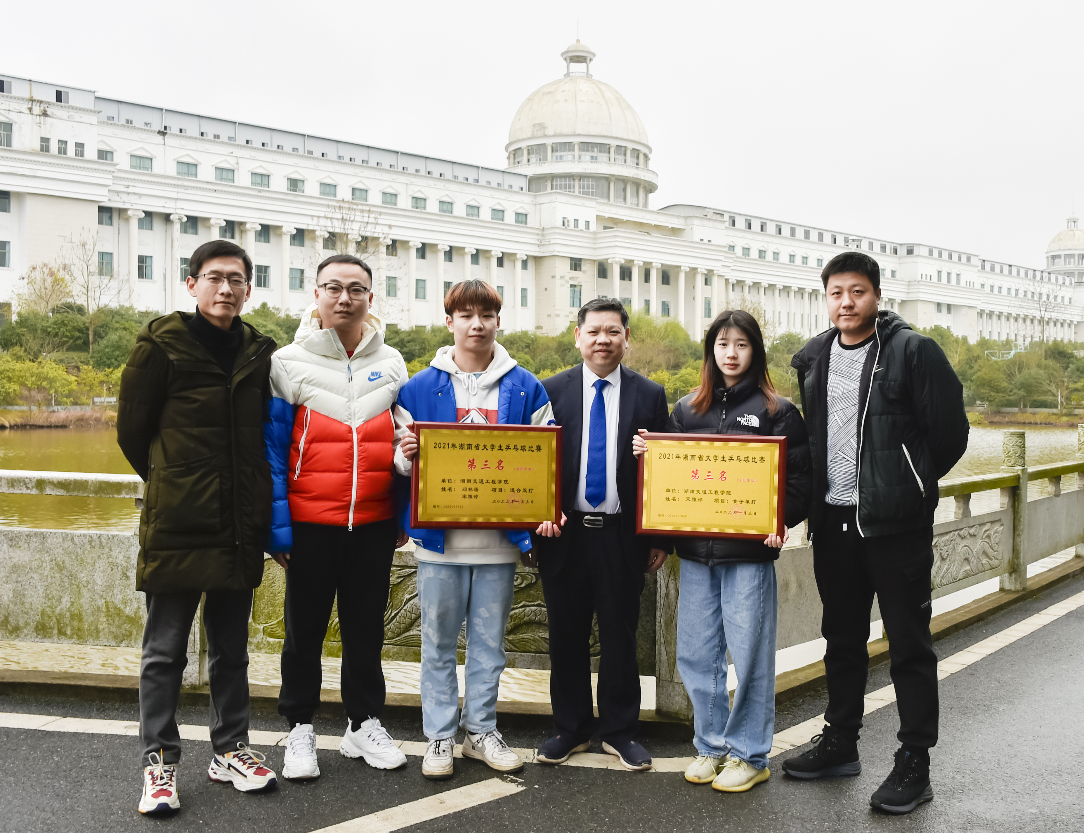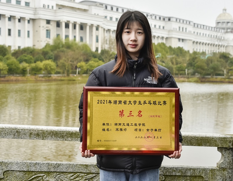 本网讯(记者 赵红深 摄影 李建华 )2021年12月27日至2022年1月3日,由湖南省教育厅主办、湖南省学生体育协会协办的2021 年湖南省大学生乒乓球比赛在湖南人文科技学院举行。我校乒乓球队在常务副校长彭文武领队和教练钞超,邓科和高晶老师的指导下,表现优异,喜获佳绩,经济管理学院国贸本2001班宋雅婷同学夺得学院甲组女子单打第三名,经济管理学院国贸本2001班宋雅婷同学和电信学院计算机网络专2003班邓林潇同学组合获学院甲组混合双打第三名。