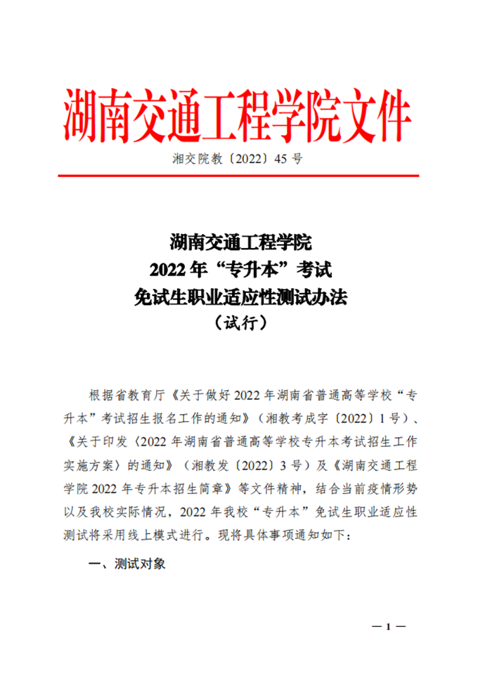 18新利在线登陆 2022年“专升本”考试免试生职业适应性测试办法