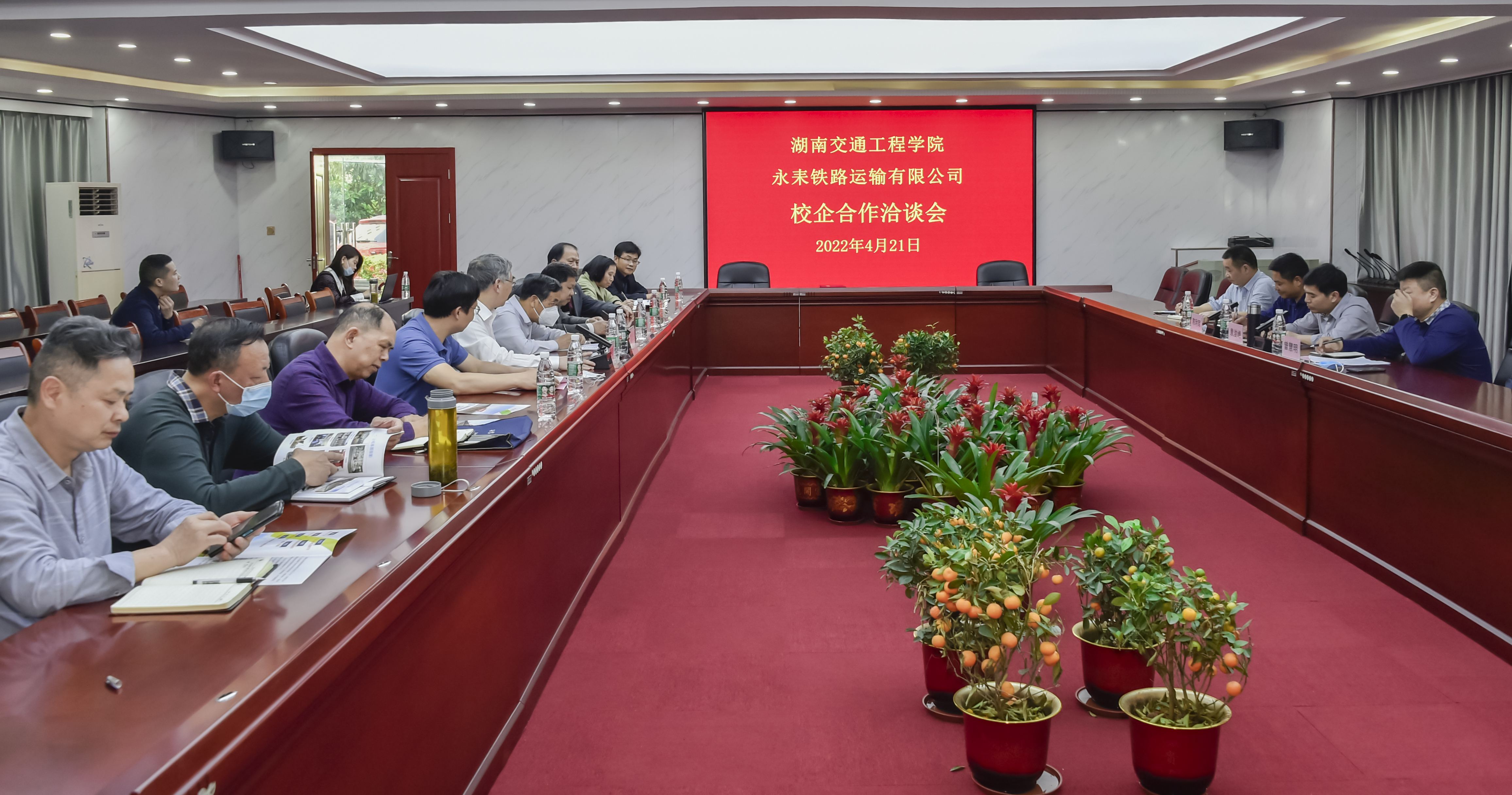 本网讯(记者  赵红深  摄影  李建华4月21日下午,湖南永耒铁路运输服务有限公司(以下简称永耒公司)党委书记、执行董事袁浚峰,办公室主任曾慧明、运输部部长陈利军一行3人来我校洽谈深化校企合作事宜。我校董事长刘福生、常务副校长彭文武、副校长樊晓平,创新创业学院院长何美生、交通运输工程学院院长罗迎社、电气与信息学院院长杨兵初、机电工程学院院长吴义虎、教务处副处长黄玲娟参加洽谈。洽谈会在学校体育馆103会议室举行,樊晓平主持。