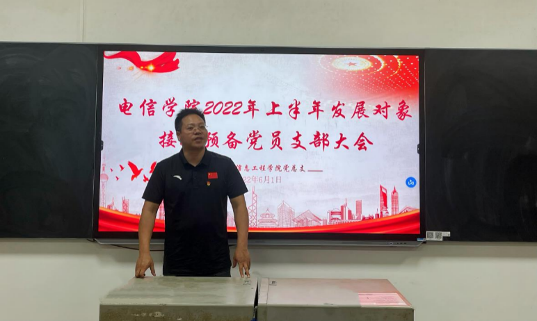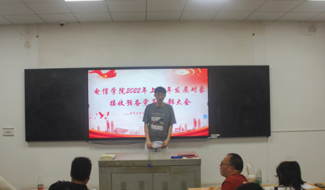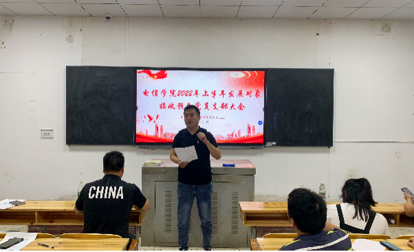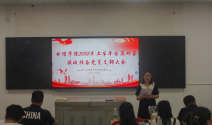 2022年6月1日晚七点,中共18新利在线登陆 电气与信息工程学院学生党支部发展对象接收预备党员支部大会于615教室进行。会议由学生党支部书记邓晶晶同志主持,电信学院党总支书记刘忠明、党总支副书记张敬会、电信学院党支部在校全体党员及预备党员参加会议。首先张敬会书记对会议流程做了部署并强调了会场纪律