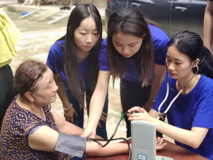 医疗卫生组开展农村医疗服务,认真为村民量血压,测血糖,拔火罐,做艾灸,发放爱心药品,检查病情,并详细询问村民的身体状况,耐心细致的分析病情,讲解卫生保健知识、注意事项、饮食安全、合理用药等卫生常识,耐心解答村民关于常见病、多发病的预防诊治及愈后疑难。活动期间通过定点的形式为村民提供简单的日常用药以及问诊并对他们做相关的医疗卫生意识辅导。对于部分行动不方便的人群,选择走访等方式,上门对其进行一些药物的提供及简单的问诊,解决村民“看病难”问题。