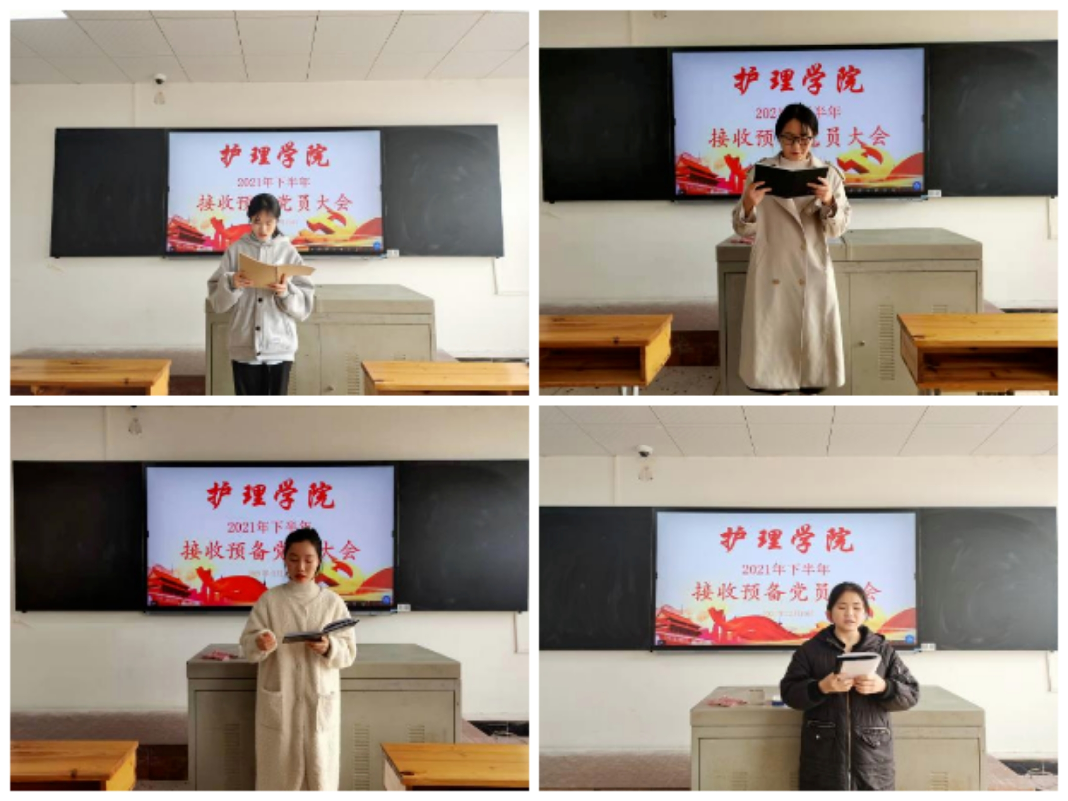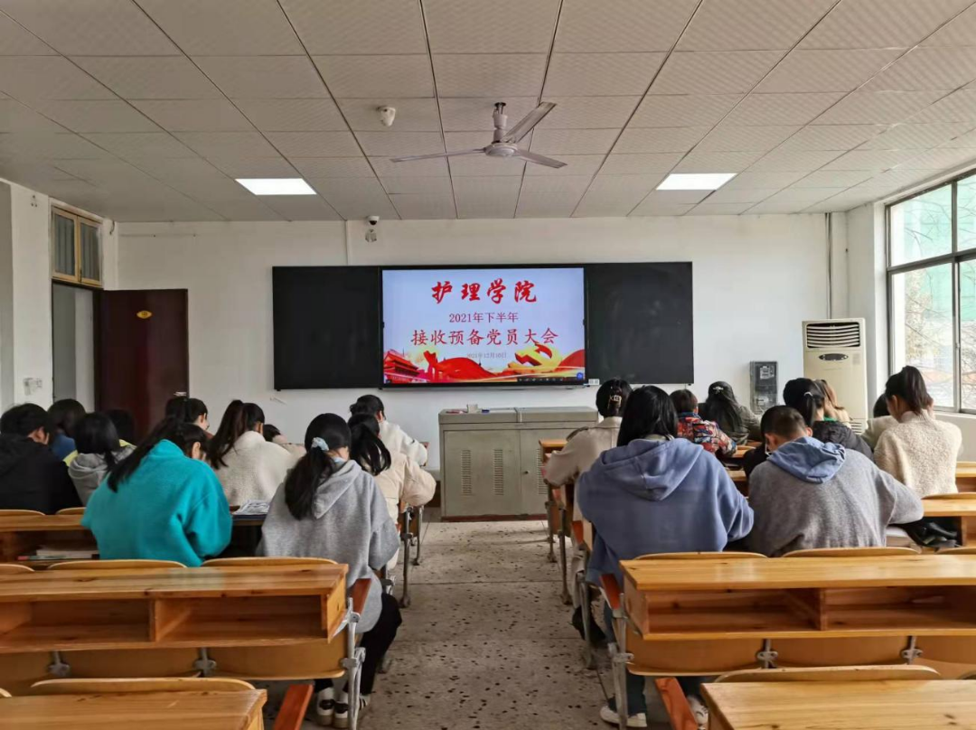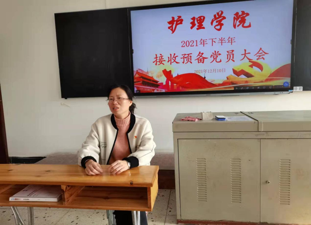 20211210日中午护理学院党支部在教学楼103召开2021年下半年预备党员接收大会护理学院党总支书记邓丽护理学院党总支副书记兼团总支书记肖桂香全体在校党员以及本次11名拟发展对象参加了本次会议会议由肖桂香副书记主持