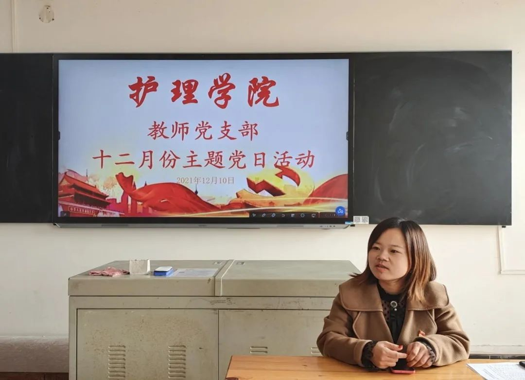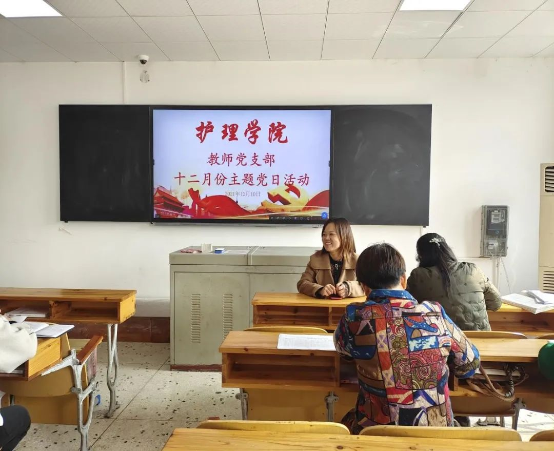 1211日中午护理学院教师党支部在教学楼103教室举行十二月份主题党日活动护理学院党总支书记邓丽党总支副书记兼团总支书记肖桂香全体教师党员参加了本次活动活动由教师党支部书记周艳平主持