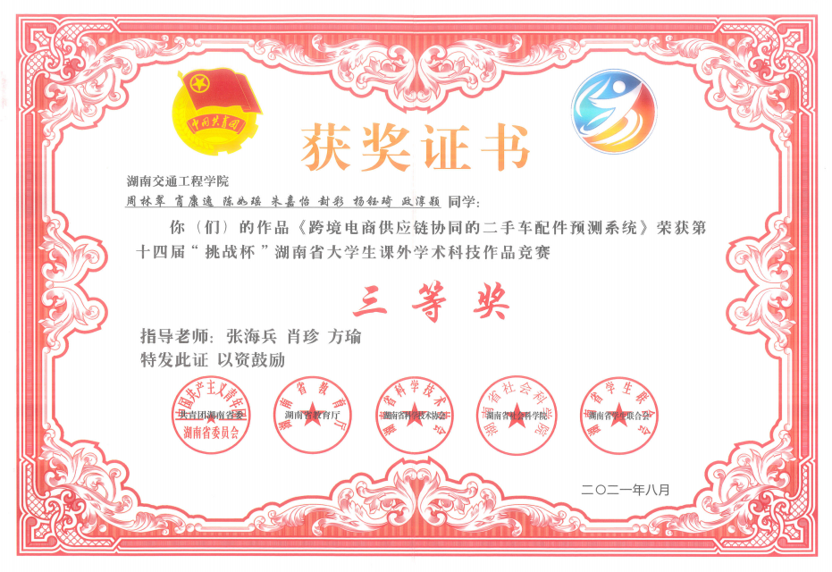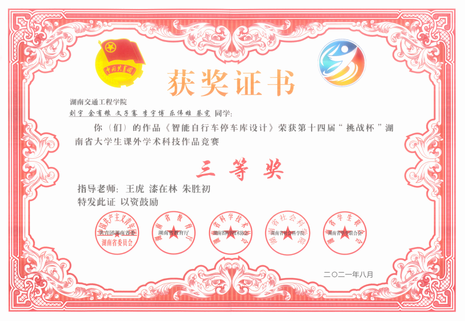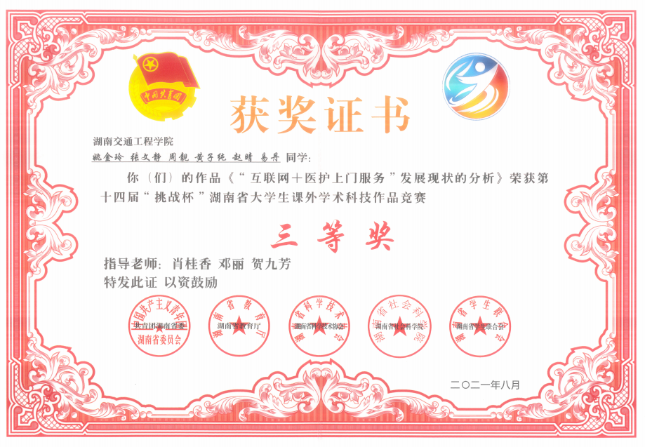 我校获得2021年第十四届“挑战杯“湖南省大学生课外学术科技作品竞赛5个奖项