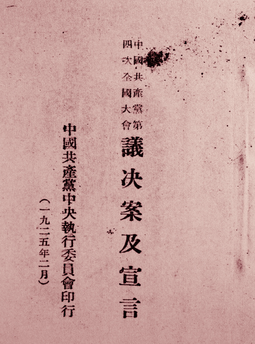 图为中国共产党第四次全国代表大会通过的议决案及宣言