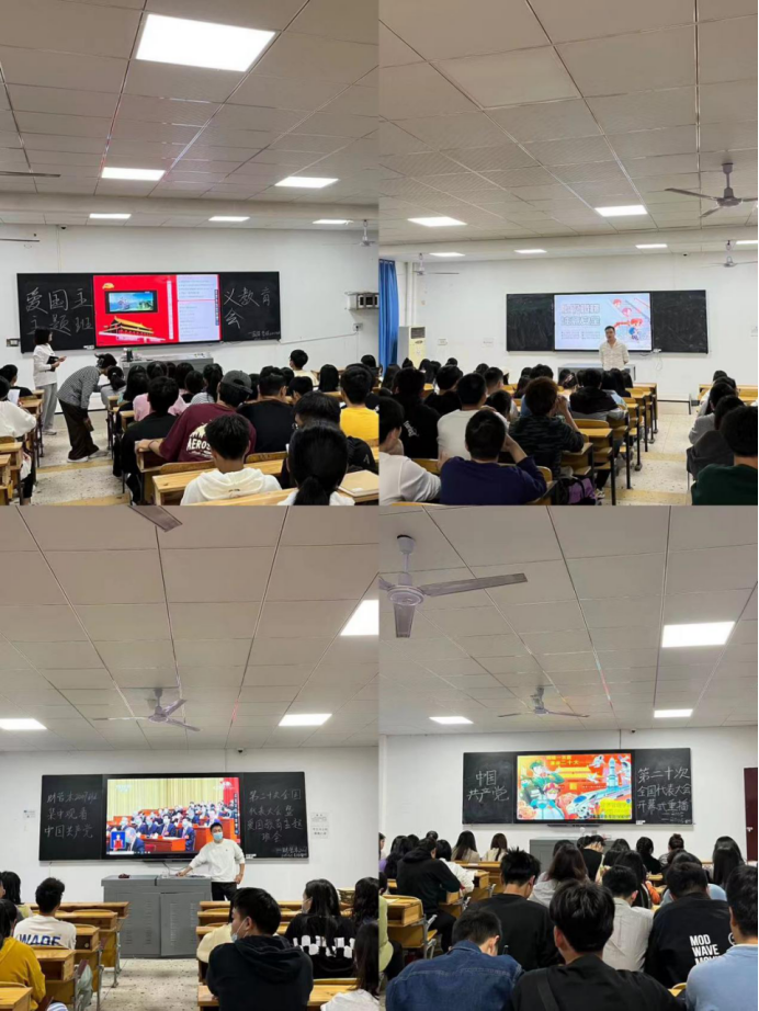 此次班会从爱国主义、安全教育两个方面展开,第一个方面从爱国主义,辅导员组织各班学生观看中国共产党第二十次全国代表大会开幕式重播,各班学生学习认真,学习后,辅导员就二十大重要意义做出一定的讲解,并让学生加强政治理论方面的学习,青年人要成为有理想有担当能吃苦肯奋斗的新时代青年。为成为对国家对社会栋梁之才而不断努力。然后,各班辅导员向学生讲解了作为一名大学生要增强爱国情怀,集体情怀,爱党、爱国、爱校,做对国家有益的事情,做对学校有益的事情,做对学院有益的事情,做对班级有益的事情,为学校本科教学质量评估贡献自己的力量。