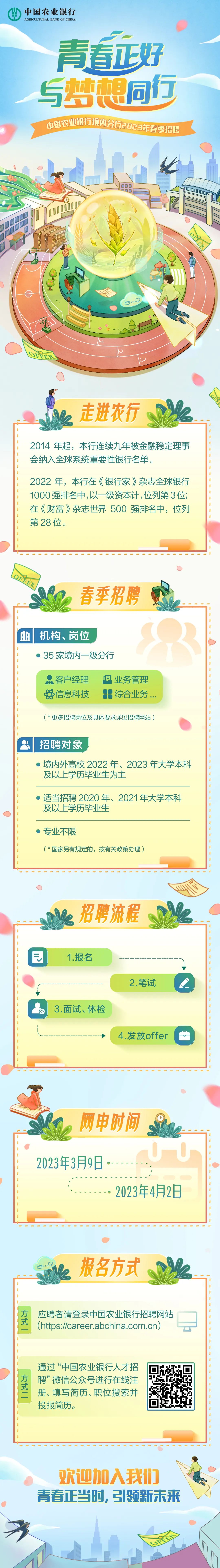 中国农业银行境内分行2023年春季招聘盛大开启!