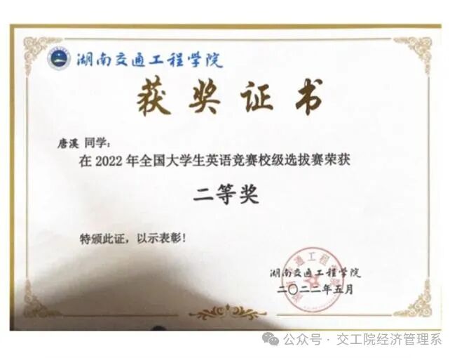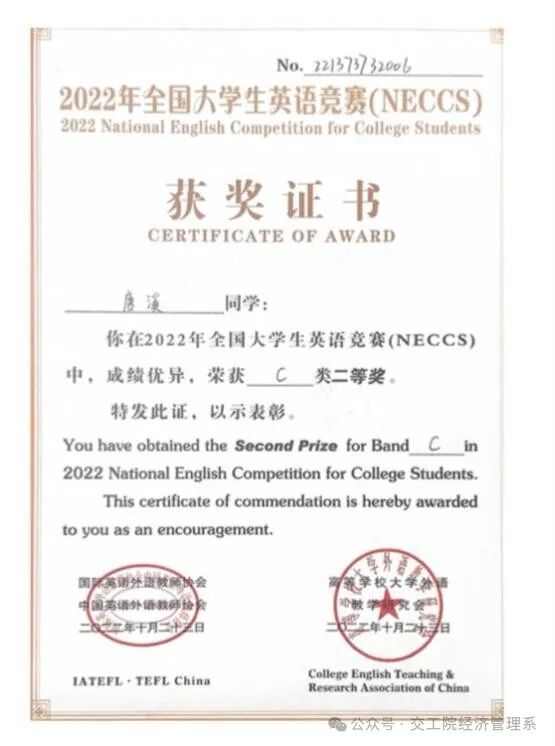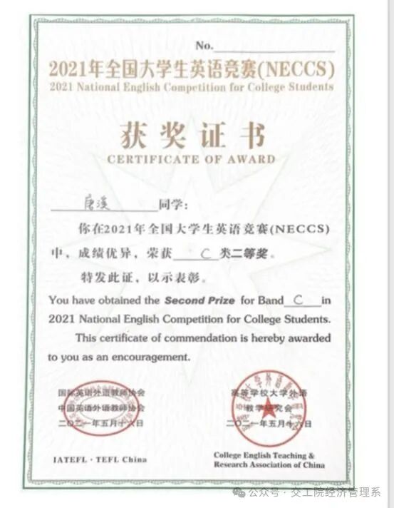 18新利在线登陆 2021-2022年获全国大学生英语竞赛二等奖