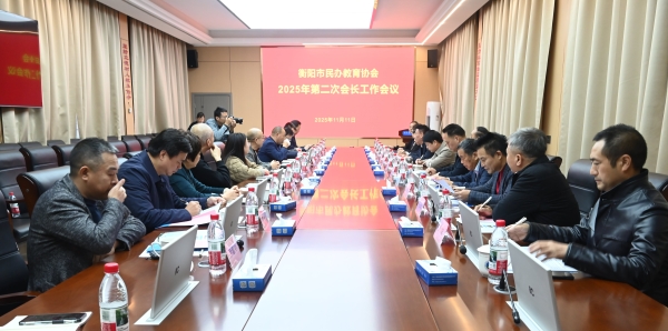 本网讯(通讯员 赵红深 摄影 邓翔 李水华)11月11日下午,衡阳市民办教育协会2025年第二次会长工作会议在我校召开。衡阳市老领导、原市民办教育协会会长杨邦伟出席会议并讲话。衡阳市教育局二级调研员周盘根、市教育局民办教育科科长凌建军到会指导,衡阳市民办教育协会会长夏卫星、市民办教育协会常务副会长兼秘书长王昶明以及市民办教育协会副会长单位(县市区会长)、市民办教育协会监事长等参加会议。会议由夏卫星主持。