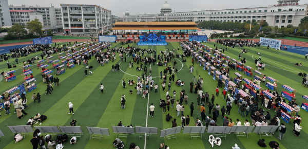 开幕式结束后,校领导陪同省、市领导走访创业孵化基地,并前往学校运动场参观创业成果展。