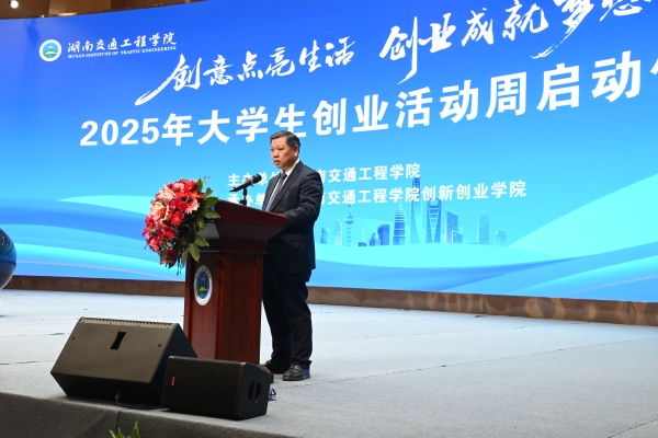 刘文君在致辞中指出,深化创新创业教育是响应国家创新驱动发展战略的必然要求,更是学校提升人才培养质量、增强服务社会能力、实现高质量内涵式发展的内在需要与战略抉择。当前,湖南正锚定“三高四新”美好蓝图,以“七个一”政策为牵引,全力打造全国领先的创业热土,为青年创客提供了广阔舞台。本次创业活动周以“创新驱动、创业筑梦”为主题,精心策划了项目路演、导师问诊、校企对接等系列活动。这既是对我校创新创业教育成果的集中展示,更是为同学们搭建的交流平台、成长阶梯。希望同学们珍惜此次机会,在交流中碰撞思想火花,在实践中锤炼过硬本领。学校党委将始终是同学们创新创业的坚强后盾,我们将持续优化创业扶持政策,完善孵化平台建设,汇聚校内外优质资源,为大家提供更广阔的成长空间、更坚实的支持保障。也恳请各位企业家和创业导师多为同学们传经送宝,助力青年创客在湖湘大地上生根发芽、茁壮成长。