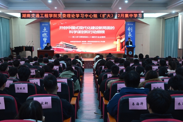 本网讯(通讯员 赵红深 李水华 摄影 邓翔 胡子婷)为深入学习贯彻党的二十届四中全会精神,统一思想认识,凝聚奋进力量,12月26日下午,学校在航母办公楼101会议厅举行党的二十届四中全会精神宣讲暨党委理论学习中心组(扩大)2025年12月集体学习。湖南第一师范学院党委书记罗成翼受邀作党的二十届四中全会精神专题宣讲。学校党委理论学习中心组全体成员,全体校领导,党务部门主要负责人,各二级党组织书记、副书记,以及全体思政课教师、辅导员与学生代表参加学习。校党委书记刘文君主持。