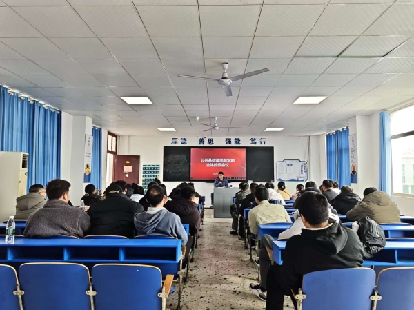 为全面部署新学期各项工作,确保公共基础课教学平稳有序开展,3月6日中午,公共基础课部在教学楼507教室召开新学期全体教师大会。全体教师参加会议,会议由公共基础课书记刘自强主持。