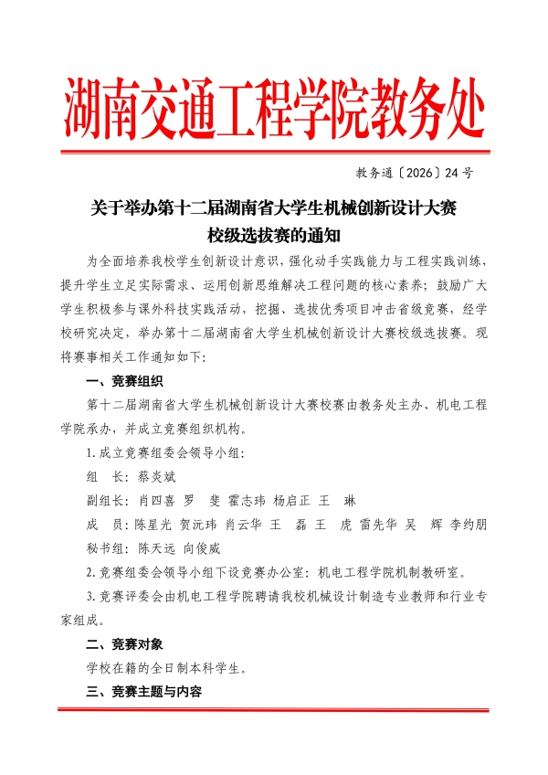 关于举办第十二届湖南省第大学生机械创新设计大赛校级选拔赛的通知.pdf