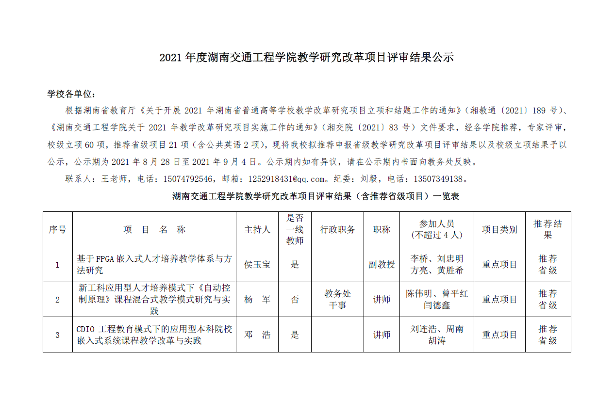 2021年度18新利在线登陆 教学研究改革项目评审结果公示