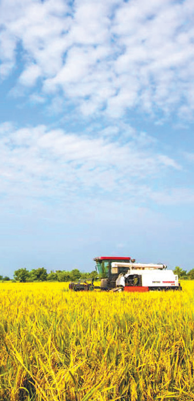 机声隆隆,稻香阵阵,在黑龙江省兰西县长江乡聚宝村,刚收获的水稻堆成座座小山,在阳光照射下金黄耀眼。光辉水稻种植专业合作社负责人邹晓辉喜上眉梢,“今年水稻长势喜人,比去年增产约15%,亩产超1100斤不在话下!”