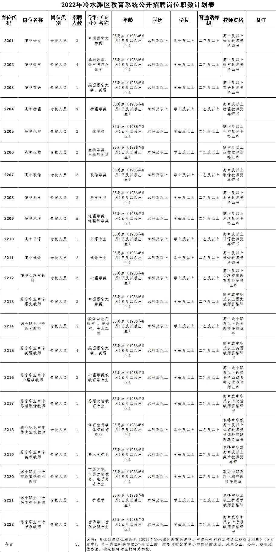本次公开招聘教师人员55名。其中,综合职业中专教师20名、高中教师35名。