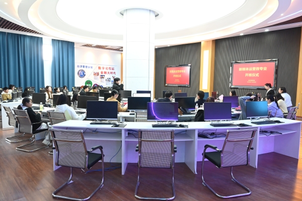 本网讯(通讯员 /摄影 赵红深)11月28日下午,由经济管理学院牵头建设的新媒体运营微专业在综合实验实训大楼125金融实训室举行开班仪式并正式授课,标志着一门融合技术实操与媒体创作的特色微专业正式落地。教务处长肖四喜、新利18体育竞猜 处副处长谢健民、经济管理学院院长王海娥出席,专业教师彭灵芝、谭园玲、张丹丹、肖湘、谢仕洪、陈晨及新媒体营运微专业全体同学共同参加了开班仪式。