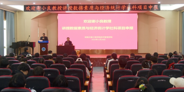 本网讯(通讯员  赵红深  周星 摄影  邓翔11月28日下午,学校在航母楼101室举行“数据素质和经济统计学社科项目申报”专题讲座,邀请湖南工商大学数学与统计学学院院长、博士生导师谢小良教授主讲。讲座由教务处副处长范双南主持。