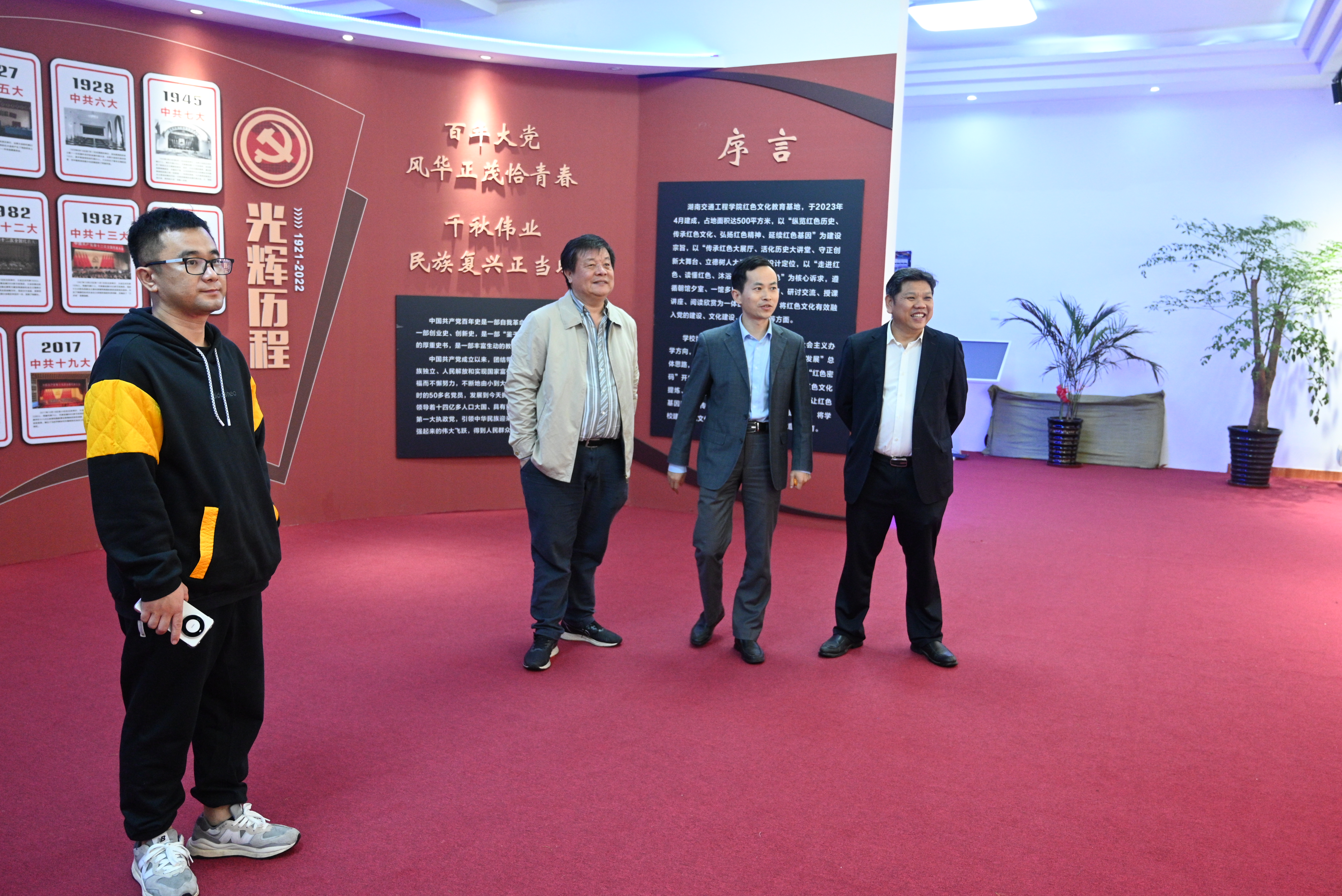 在刘文君、副董事长刘秋菊等陪同下,姜青山一行参观考察了我校工程实践创新中心、北斗应用开发实验室、无人机应用开发实验室、交通大数据实验室、铁道工程与交通运输实训基地、轨道交通综合模拟实训基地等学生实践实训基地和红色文化教育馆。姜青山对我校董事长刘福生浓郁的教育情怀、先进的办学理念、准确的办学定位、鲜明的办学特色,雄厚的教学条件和毕业生就业形势表示赞赏。