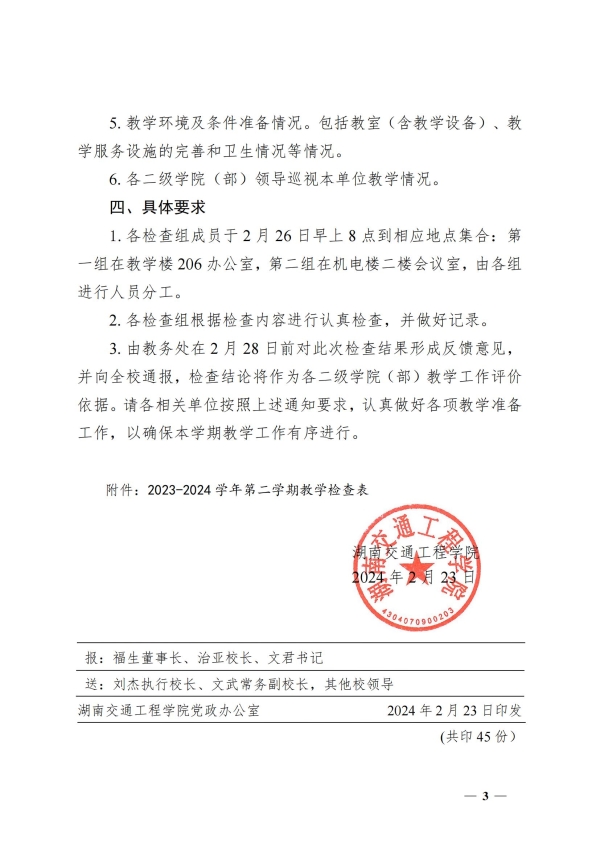 关于开展 2023-2024 学年第二学期开学第一节课教学秩序检查的通知