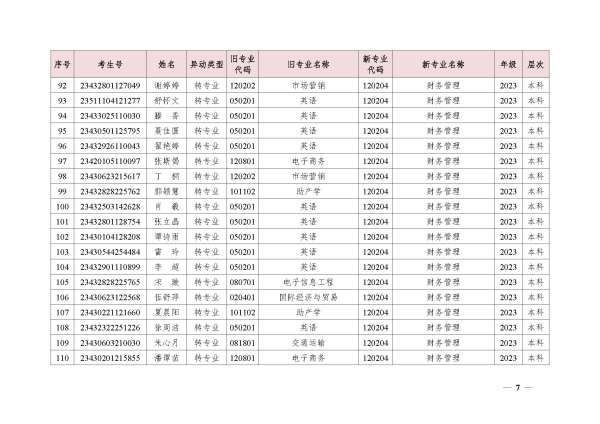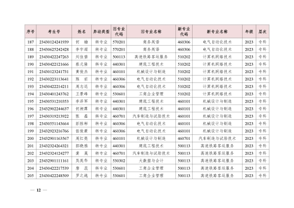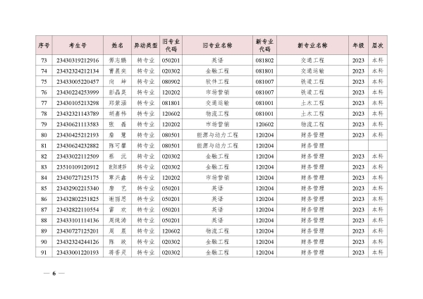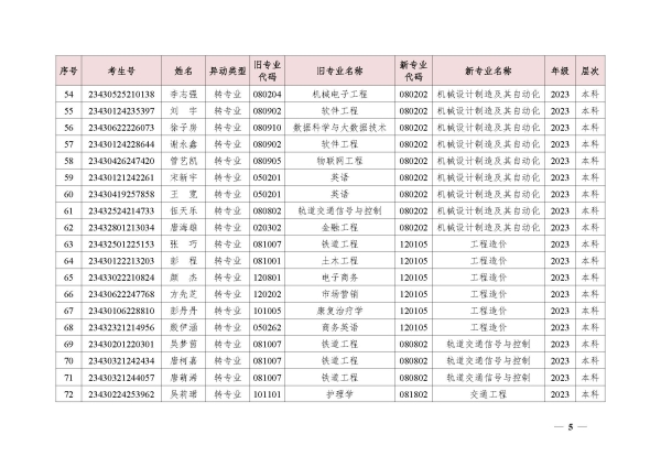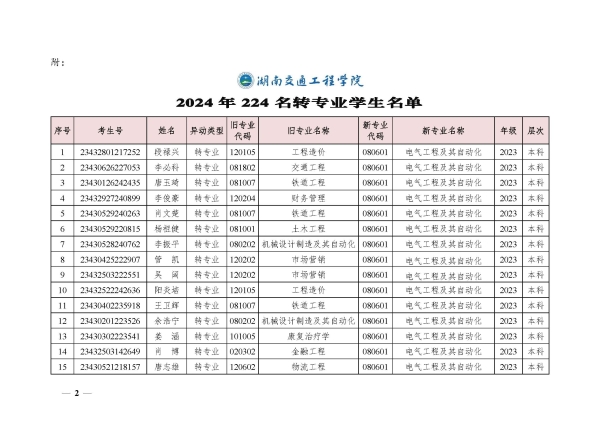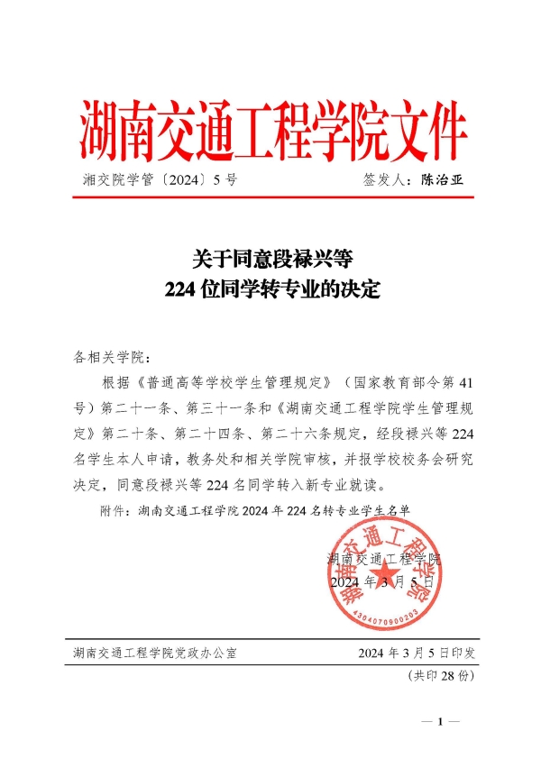 关于同意段禄兴等224位同学转专业的决定(湘交院学管〔2024〕5号)