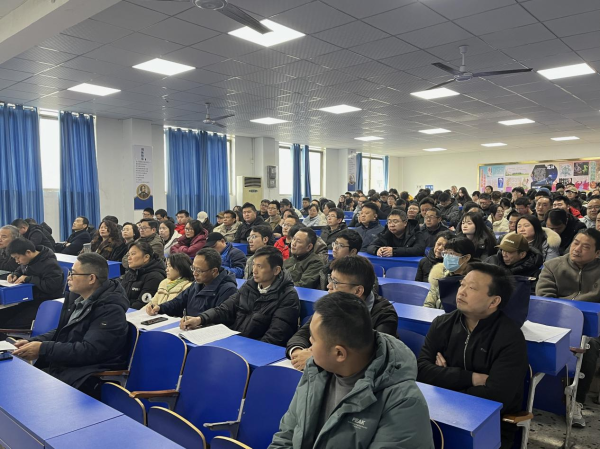 杨兵初院长以《抖擞精神,凝心聚力——坚决打赢复评工作攻坚战》为题作报告,号召全院师生以“星光不问赶路人,时光不负有心人”的精神,全力以赴迎接评估。他指出,距离评估仅剩46天,时间紧、任务重,大家要争分夺秒,与时间赛跑。杨院长对全体师生提出了具体要求:一是强化学习,严格落实评估要求坚决执行“九个坚”“四个回归”“四新”“四有”“五金一化”,坚持“四个促进”“三个基本”“两个突出”“一个引导”等评估内涵,确保各项指标全面达标;二是强化课堂管理全面落实“管教管学”,提升“三率”(到课率、抬头率、前排座位率),营造优良学风,打造高效课堂;三是优化教学方法推广“翻转课堂”等多元化教学模式,推动数字化教育,提升教学互动性和实效性;四是完善教学档案确保试卷、毕业设计论文等教学材料齐全、规范,做到有章可循、有据可查。