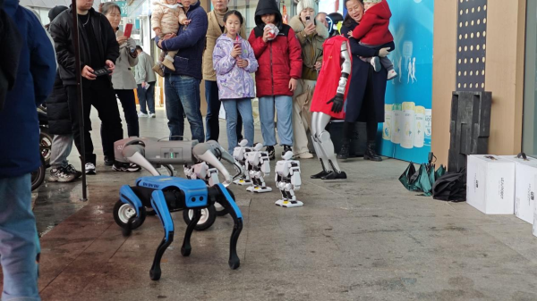 在科技创新展区,学生团队携“智能垃圾分类助手”“模块化太阳能充电器”等12项原创作品亮相。其中,“再生材料3D打印工坊”吸引近百名居民驻足,通过废旧塑料再生为耗材的全流程演示,直观展现环保科技魅力;乐聚人形机器人编队以毫米级同步精度演绎科技舞蹈,宇树四足机械狗灵活翻越障碍,现场观众争相体验平板操控机械狗穿越障碍的乐趣。